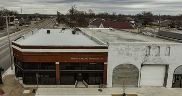 We recently renovated a 5100 S.F. space in the Midtown District of Joplin, Missouri to use as our new office space. The building was constructed in the early twentieth-century and has had a wide variety of occupants since then. We are extending the building's lifespan with a contemporary, more efficient roof system, and have brought the interior more daylight with new storefront glass systems on both 15th and Main Street.